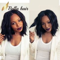 Wavy Curly Bob Human Hair Wigs Side Bangs For Black Women 180 Density Virgin Hair Full Natural Front Lace Wig Bob Style Silk Wig Body Wave Lace Wig