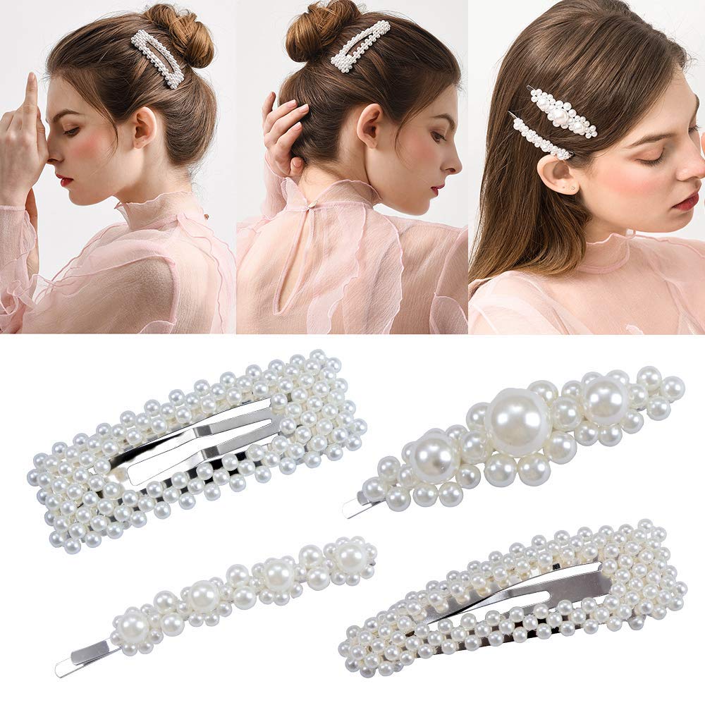 Jaciya Pearl Hair Clip Pins Decorative 4 Pack Hair Barrettes Large Big Hair Styling Clips Wedding Braiding