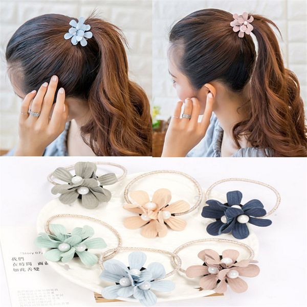 Flowers Pearl Hair Bands Women Headwear Girls Elastic Rubber Rope Hairstyle Headdress Scrunchy Hair Accessories Headband Accessories Hair Jewelry From